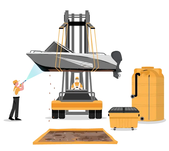 Book løft til eller fra henger her! Få båten spylt med industrispyler med rotordyse, og få den løftet direkte på- eller av henger. Enklere blir det ikke!