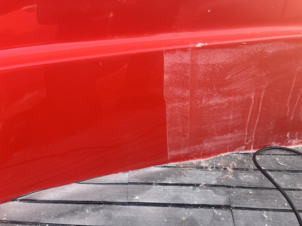 Da det blå feltet var ferdig gjorde jeg puta så ren som det lot seg gjøre med lufttrykk, for å begynne å polere den hvite delen av skroget...